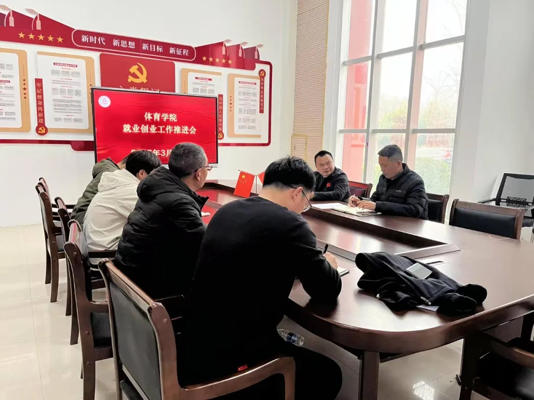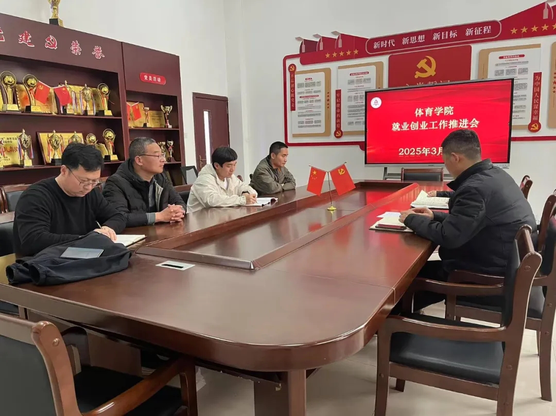 3月11日,体育学院召开2025届毕业生就业创业工作推进会,体育学院党总支书记范伟杰,副院长李海磊,教研室主任及毕业生辅导员参加。