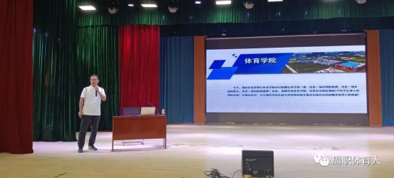 王晖书记以“我们的城市”、“我们的学校”、“我们的学院”、“我们的未来”四个方面,分享周口历史的悠久,我们学校的辉煌,体育学院的成就,规划我们自己的未来。